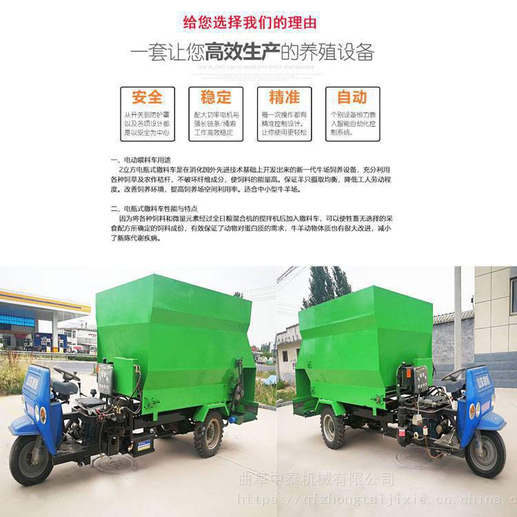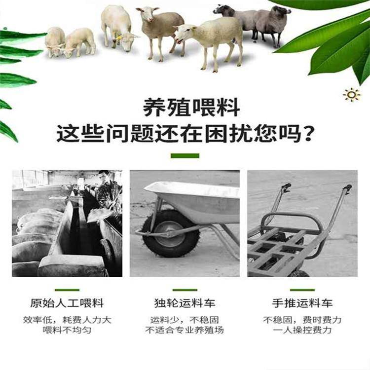 此款喂牛羊猪送料车,适用于中小规模的育肥猪舍牛羊舍,把饲料装入喂料车,利用电瓶动力通过皮带输送把饲料喂入牲畜食槽,喂料方便,节省人力物力,撒料过程及速度可以控制,操作简单实用;绿色环保:全部使用电驱动,无噪声,无振动,无二氧化碳排放。