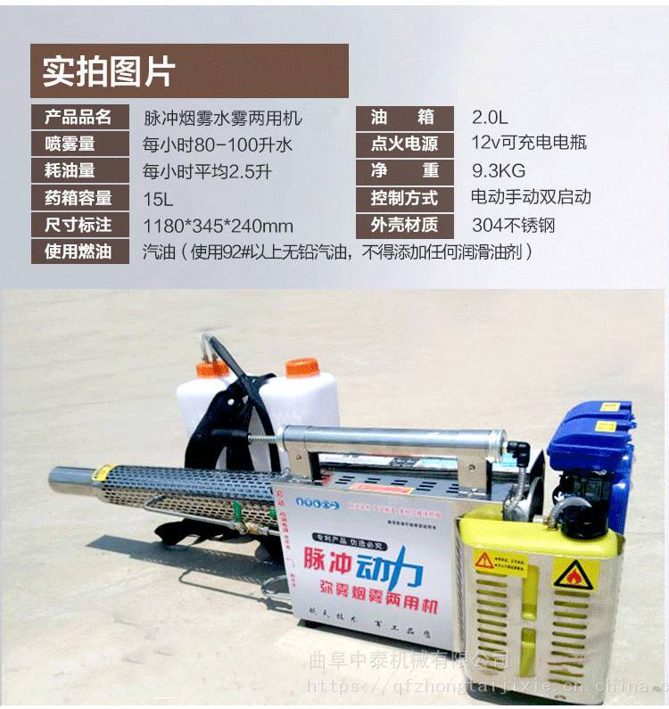 1.功率大,耗油少、压力强,雾化均匀,射程高/远;