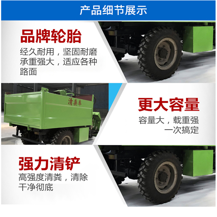 [四驱清粪车】:5.15米*2米*2.4米【容量】:5立方【配套动力】:490型柴油发动机,60马力左右