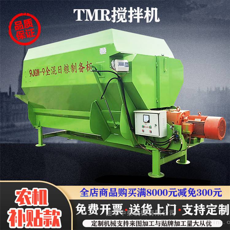 TMR饲料搅拌机是用于制作动物饲料的装备机械,它的功能是装载、切割、混合各类饲料的原料,终得到奶牛和畜牧养牛、羊、马、鹿等适口的TMR全混合饲料。配合提升机械或人工喂入等形式通过混料机箱内的搅 龙完成切割、揉搓等工艺搅拌,将粗、细饲料排除至饲养场地或直接排料至饲料槽。