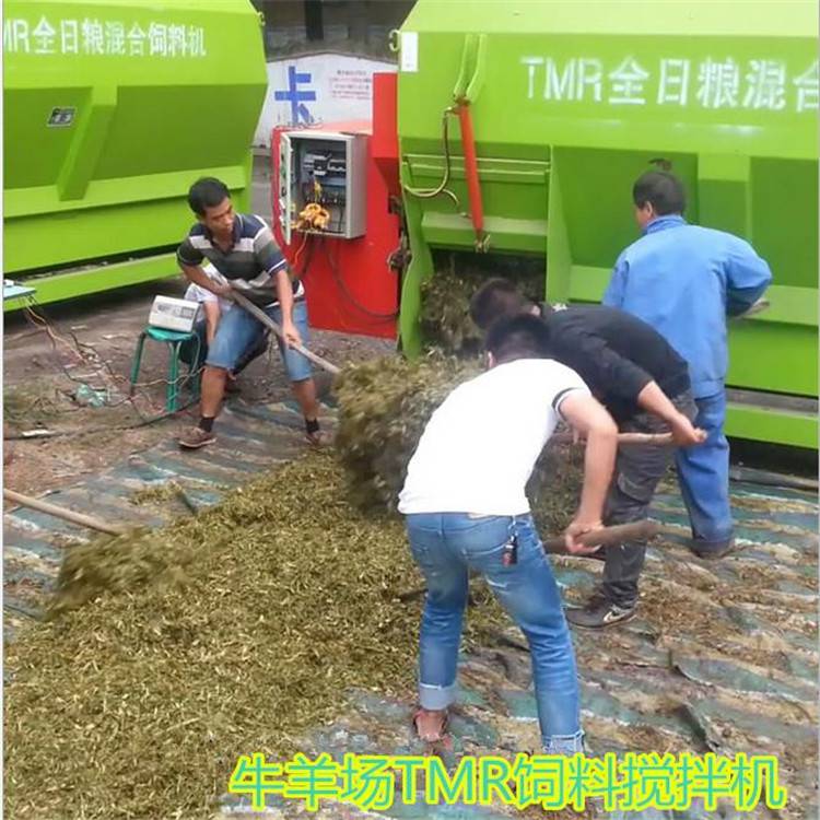 TMR全混合饲料搅拌机是在消化国外X技术基础上开发出来的新一代牛羊场饲养设备,能将各种干草、农作物秸杆、青贮饲料等纤维饲料和精饲料直接进行混合搅拌。充分利用各种饲草及农作秸杆,不破坏纤维成分,使饲料的能量效率化。饲料混合均匀度高,能量摄取均衡,降低工人劳动程度。改善饲养环境,提高饲养场空间利用率。适合中小型饲养场,全混合日粮搅拌机主要有一个或两个绞龙组成,螺旋绞龙分为上旋和下旋。在混切搅拌时,物料从箱体两端各个方位同时向搅拌机中间位置旋切搅拌。绞龙螺旋体上每个螺旋导程装有动刀片,与饲料搅拌机中心线位置上的固定齿作切割工作,将通过的各种纤维性草料,秸秆进行切割搅拌,从而达到粉碎混合均匀的全混合日粮喂养效果。混合饲料和产量的提高,因为将各种饲料和微量元素加入饲料搅拌机混合搅拌后,可以使牲畜无选择的采食配方所确定的饲料成份,X保证了动物对蛋白质的需求,牛羊动物体质也有很大改进,减小了新陈代谢疾病。